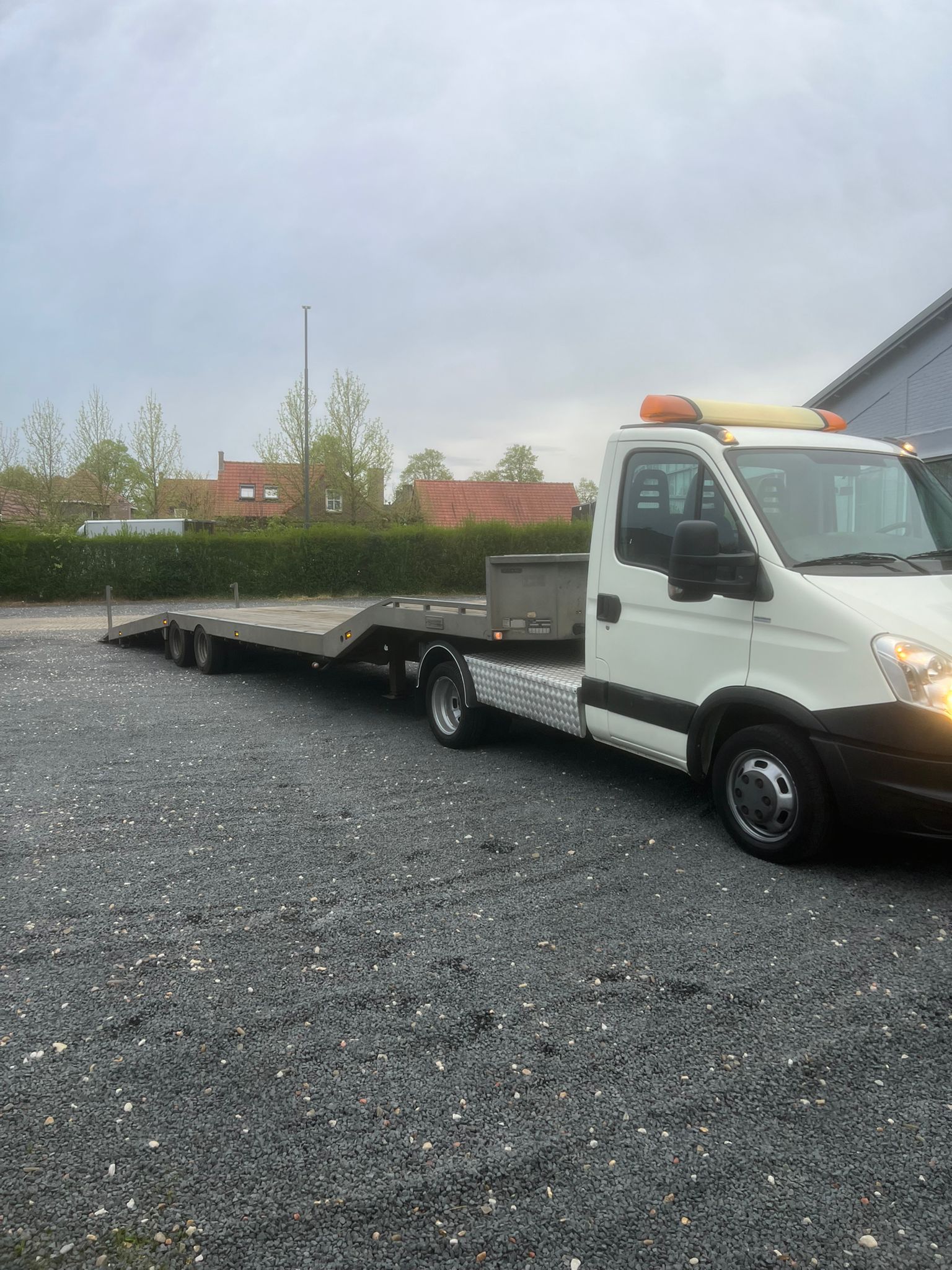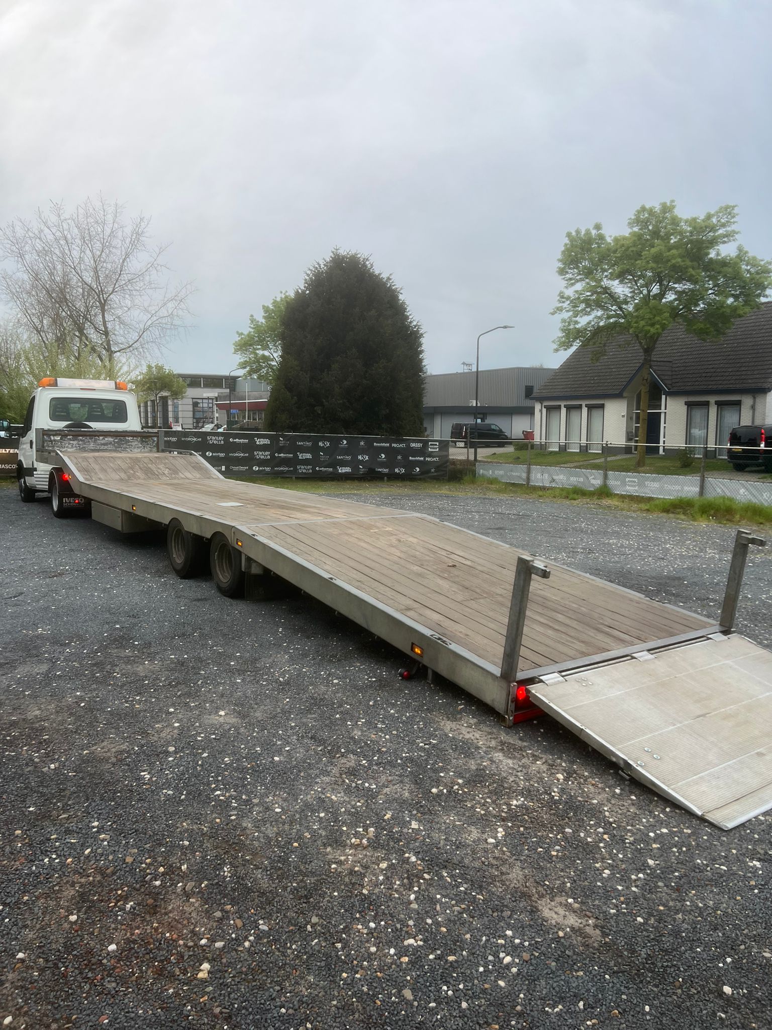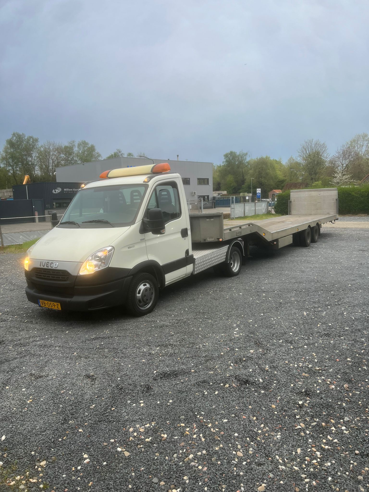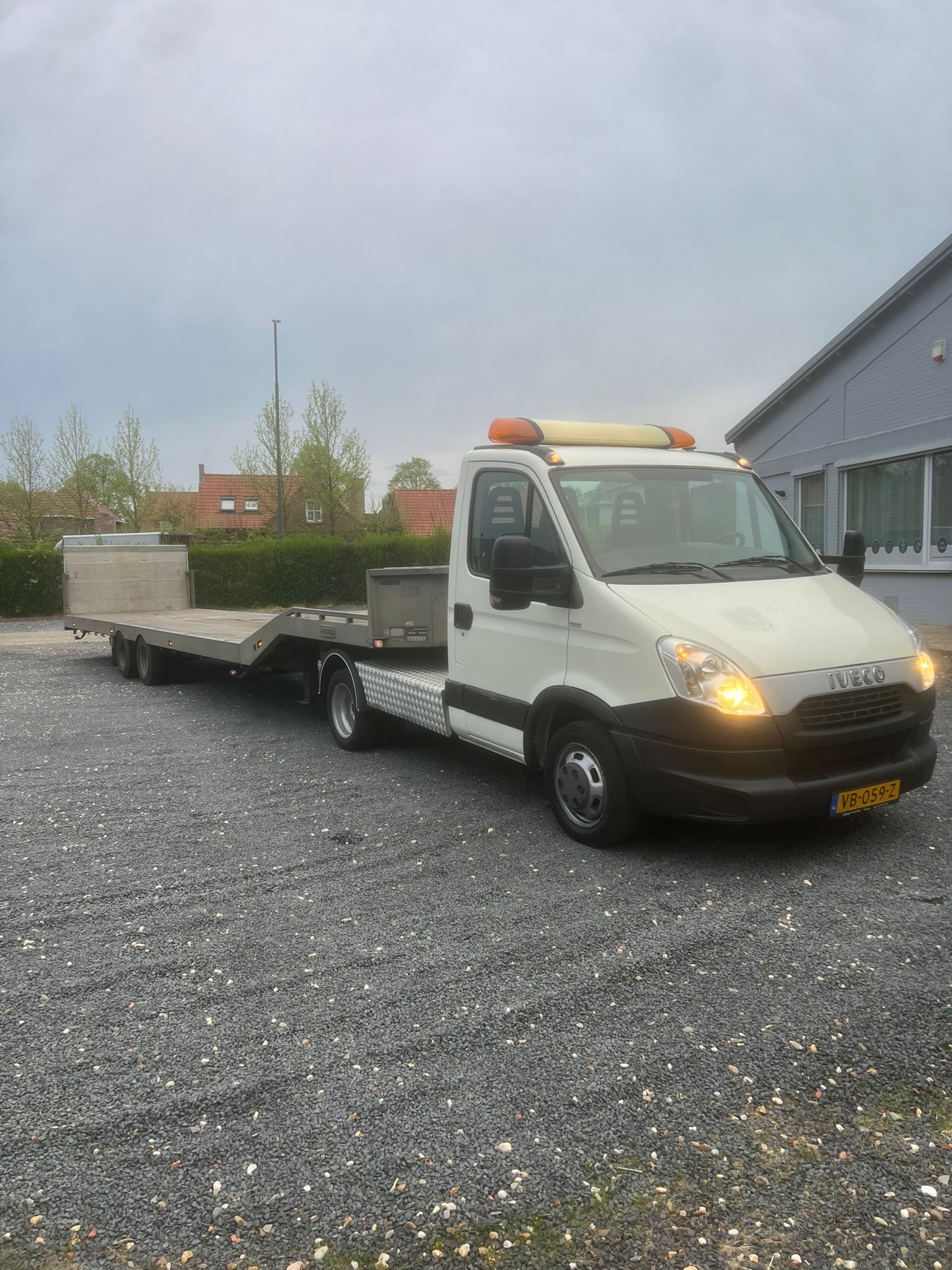 Iveco Daily 35C17 met Veldhuizen luchtgeveerde knikkende semi-dieplader oplegger